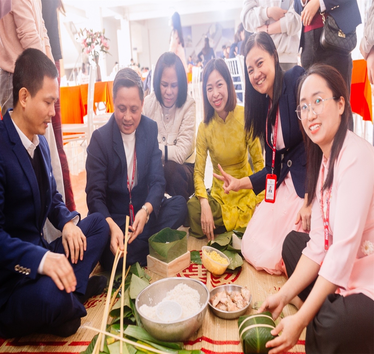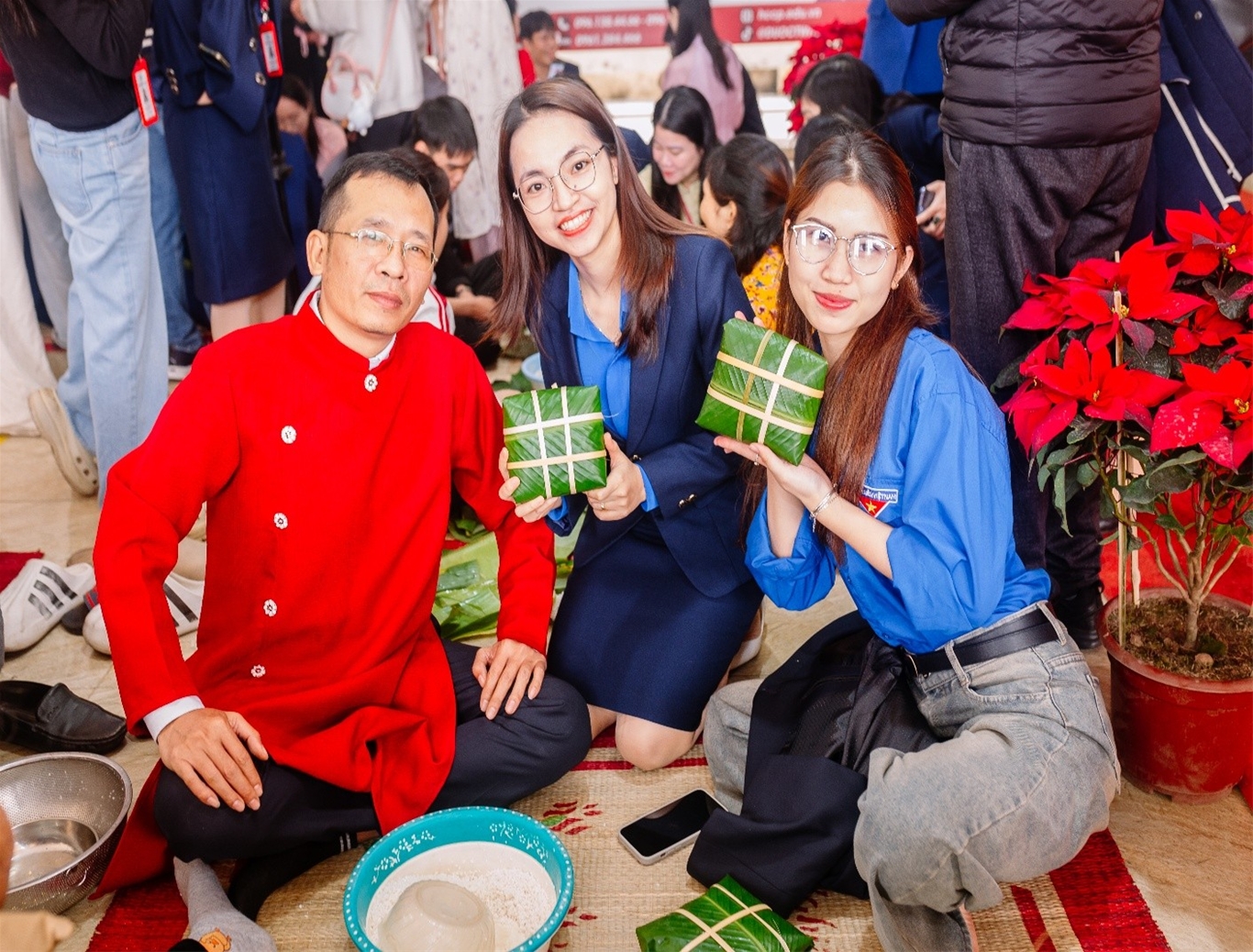 Tiếp theo đó là hoạt động gói bánh chưng. Tham gia hoạt động, mỗi Tổ công đoàn, mỗi lớp học sinh, sinh viên cử ra 01 đoàn viên công đoàn, đoàn viên thanh niên và học sinh, sinh viên tham gia hoạt động gói bánh chưng.