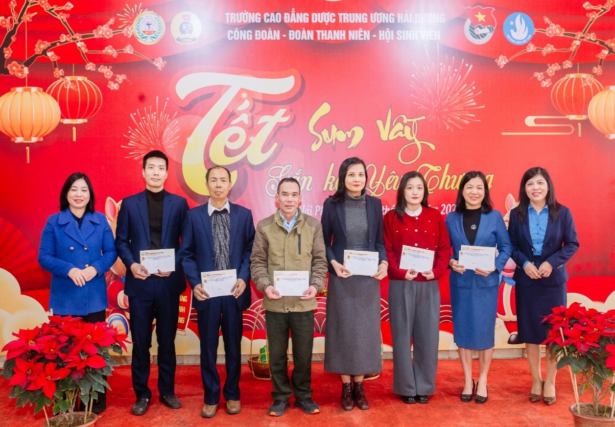Cũng tại chương trình, thay mặt Ban lãnh đạo Nhà trường, đồng chí Trần Bá Kiên - Phó bí thư Đảng bộ, Hiệu trưởng đã gửi lời chúc mừng năm mới tới toàn thể viên chức, người lao động và học sinh, sinh viên nhà trường nhân dịp Tết cổ truyền của dân tộc. Thể hiện sự quan tâm, chia sẻ, tiếp thêm động lực cho viên chức, người lao động và học sinh, sinh viên đã có nhiều nỗ lực, cố gắng trong công tác, học tập và rèn luyện, Ban lãnh đạo và Công đoàn Trường đã trao 06 suất quà Tết cho viên chức, người lao động và 38 suất quà Tết cho các em học sinh, sinh viên để cùng nhau đón một mùa Xuân yêu thương, ấm áp và đầy hy vọng.