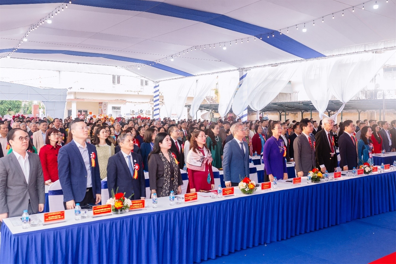 Phát biểu tại buổi lễ, Đồng chí Thứ trưởng Bộ Y tế Vũ Mạnh Hà đánh giá cao nỗ lực và thành tựu của nhà trường trong 6 thập kỷ qua – từ những lớp học đơn sơ ban đầu đến một cơ sở đào tạo dược học uy tín, góp phần chuẩn hóa, hiện đại hóa đội ngũ cán bộ dược cả nước. Thứ trưởng nhấn mạnh, trong thời kỳ chuyển đổi số và hội nhập quốc tế, nhà trường đã chủ động đổi mới, mở rộng ngành nghề với ngành Dược là nghề trọng điểm cùng với đó chú trọng phát triển các ngành chuyên sâu của ngành Dược, gắn kết doanh nghiệp, hướng tới mô hình “trường học thông minh”, lấy người học làm trung tâm. Thứ trưởng tin tưởng nhà trường sẽ tiếp tục phát huy truyền thống 60 năm, không ngừng sáng tạo, tiến tới mục tiêu trở thành Trường chất lượng cao, đa ngành trong lĩnh vực chăm sóc sức khỏe, xứng đáng là trung tâm đào tạo – nghiên cứu – chuyển giao tri thức hàng đầu của Việt Nam.