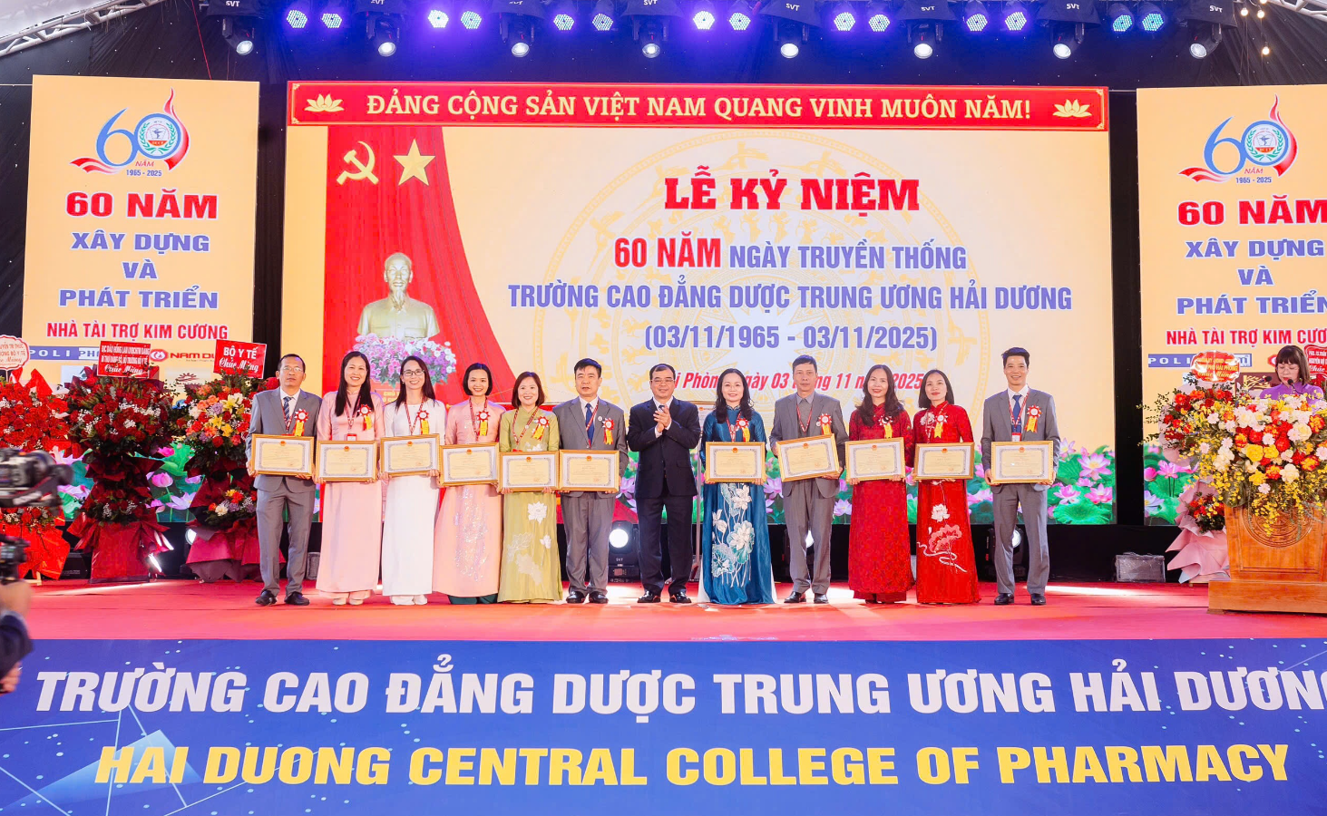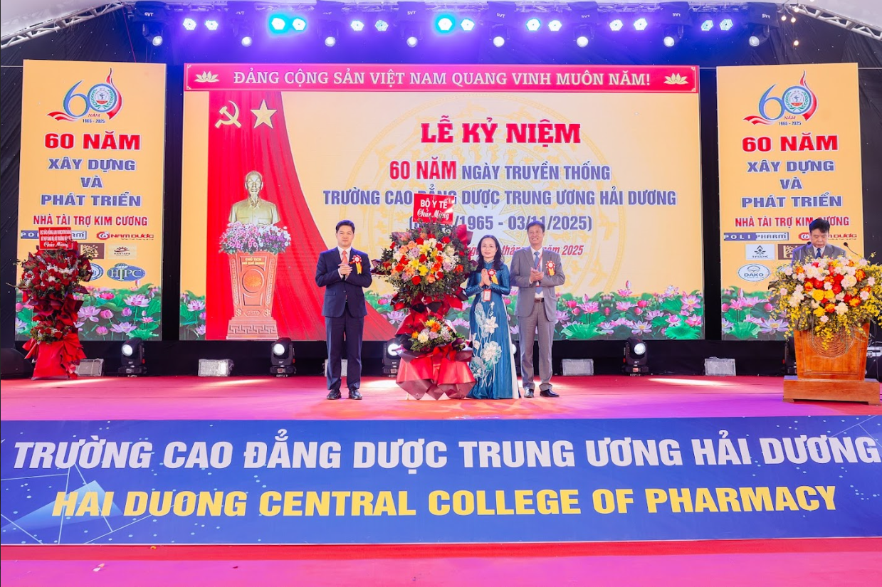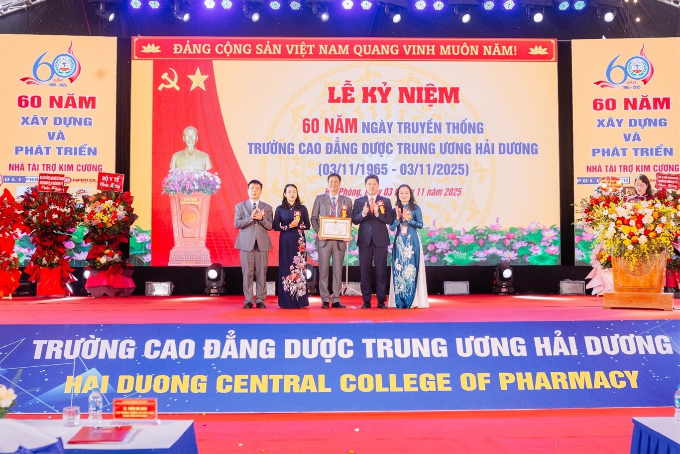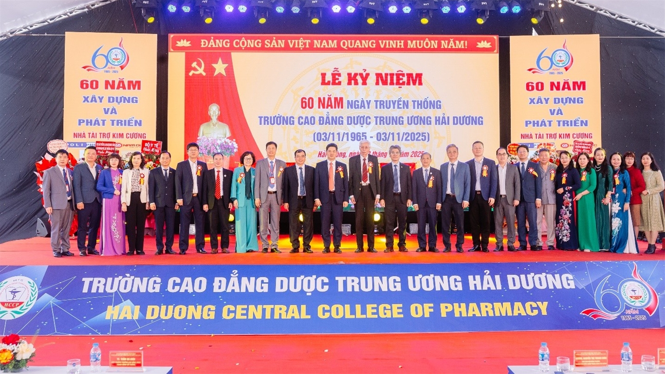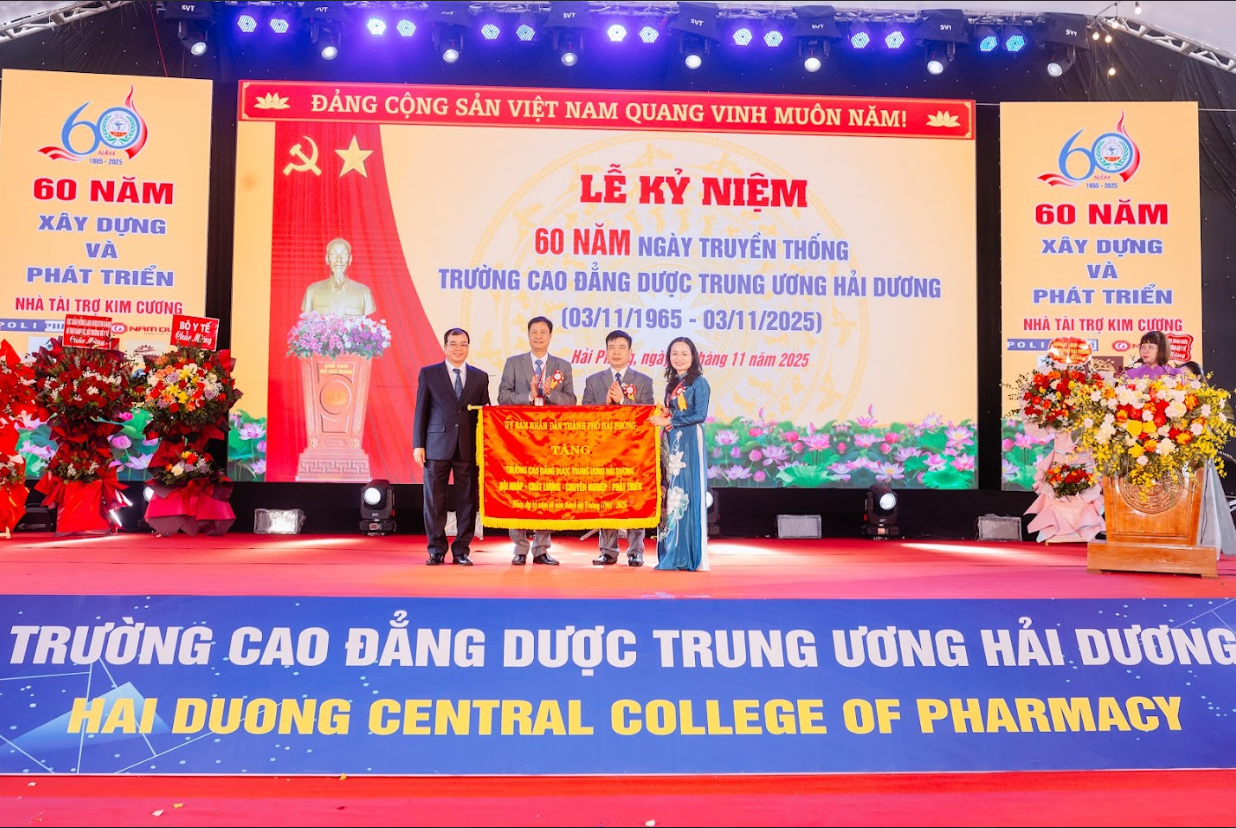 Sáng ngày 03/11/2025, trong không khí hân hoan, tự hào của toàn thể cán bộ, giảng viên, học sinh sinh viên, Trường Cao đẳng Dược Trung ương Hải Dương đã long trọng tổ chức Lễ kỷ niệm 60 năm Ngày truyền thống (1965 – 2025) tại khuôn viên nhà trường. Buổi lễ vinh dự đón tiếp đồng chí TS. Vũ Mạnh Hà, Ủy viên dự khuyết Ban chấp hành Trung ương Đảng, Thứ trưởng thường trực Bộ Y tế; đồng chí Nguyễn Minh Hùng – Thành ủy viên, Phó Chủ tịch UBND Thành phố Hải Phòng; Đại diện các Vụ, Cục trực thuộc Bộ Y tế, Bộ Giáo dục và Đào tạo, UBND Thành phố Hải Phòng; Các cấp, các ngành cùng các đơn vị đối tác, doanh nghiệp, các thế hệ lãnh đạo, nhà giáo, cán bộ viên chức, học sinh, sinh viên của nhà trường qua các thời kỳ.