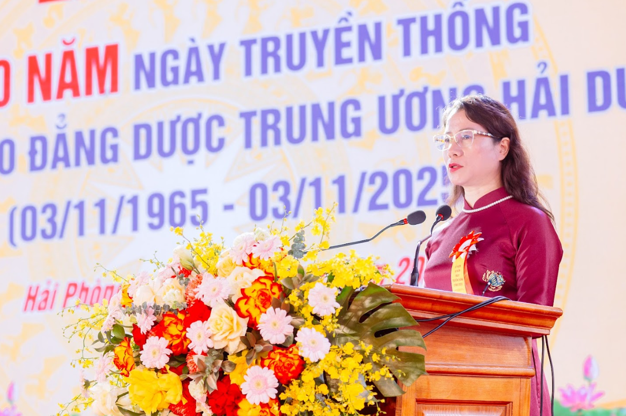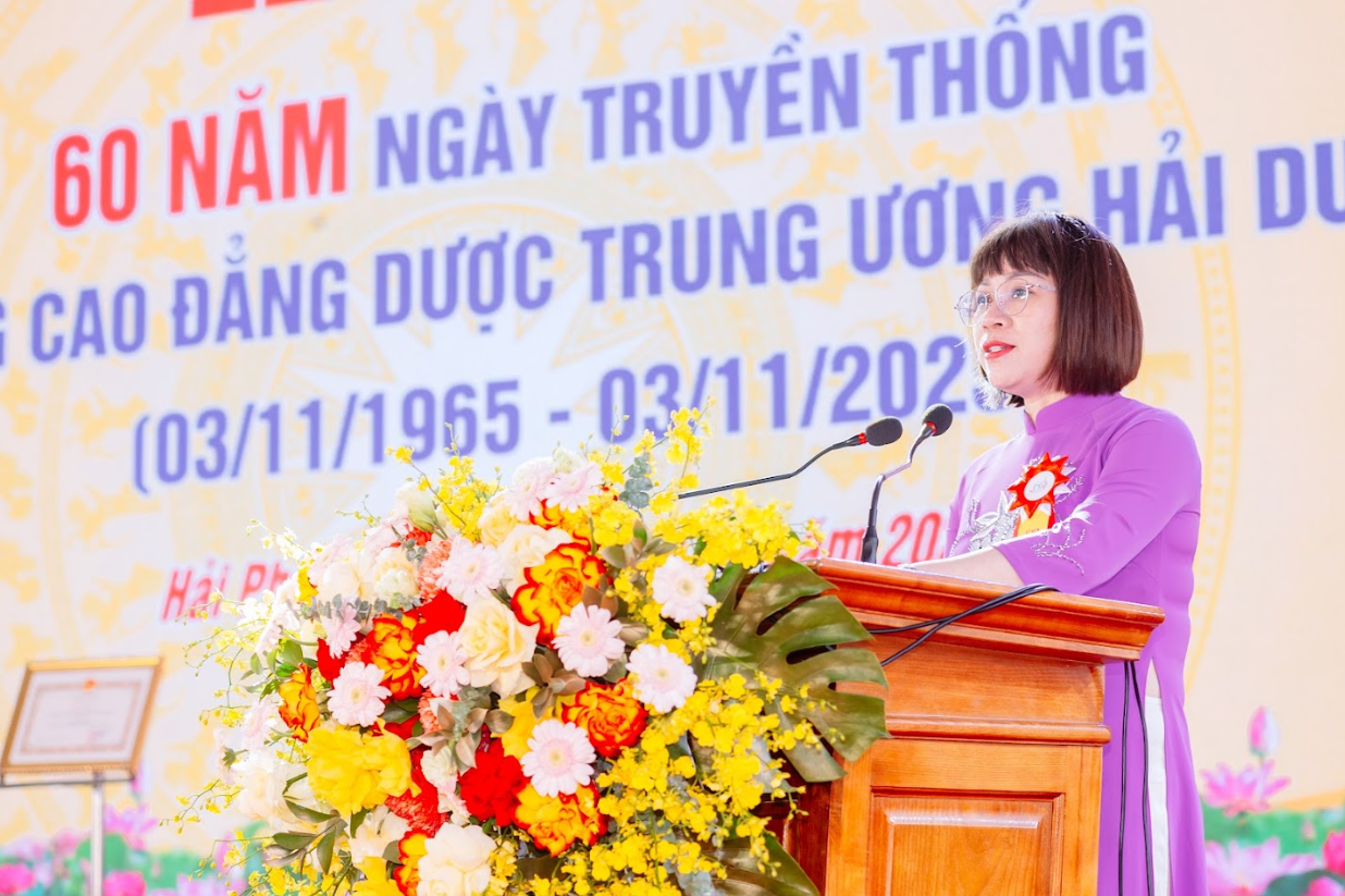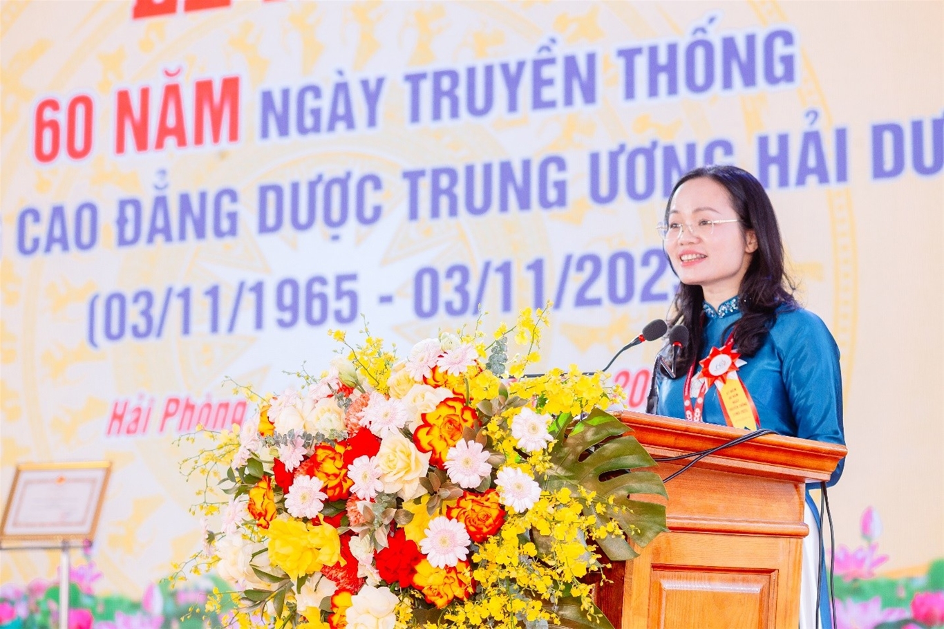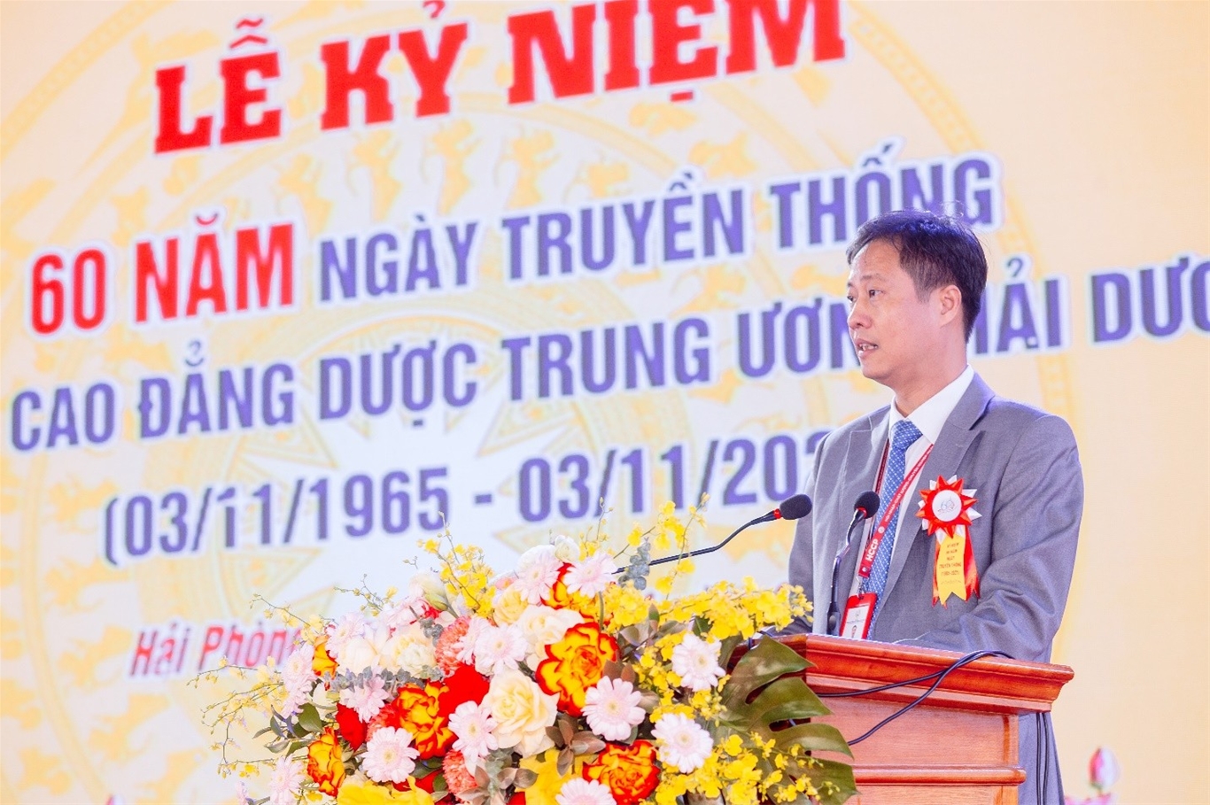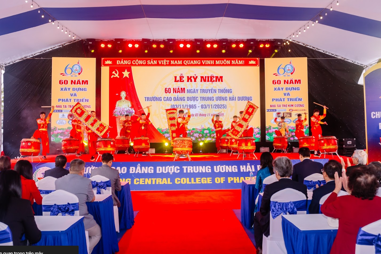Sáng ngày 03/11/2025, trong không khí hân hoan, tự hào của toàn thể cán bộ, giảng viên, học sinh sinh viên, Trường Cao đẳng Dược Trung ương Hải Dương đã long trọng tổ chức Lễ kỷ niệm 60 năm Ngày truyền thống (1965 – 2025) tại khuôn viên nhà trường. Buổi lễ vinh dự đón tiếp đồng chí TS. Vũ Mạnh Hà, Ủy viên dự khuyết Ban chấp hành Trung ương Đảng, Thứ trưởng thường trực Bộ Y tế; đồng chí Nguyễn Minh Hùng – Thành ủy viên, Phó Chủ tịch UBND Thành phố Hải Phòng; Đại diện các Vụ, Cục trực thuộc Bộ Y tế, Bộ Giáo dục và Đào tạo, UBND Thành phố Hải Phòng; Các cấp, các ngành cùng các đơn vị đối tác, doanh nghiệp, các thế hệ lãnh đạo, nhà giáo, cán bộ viên chức, học sinh, sinh viên của nhà trường qua các thời kỳ.