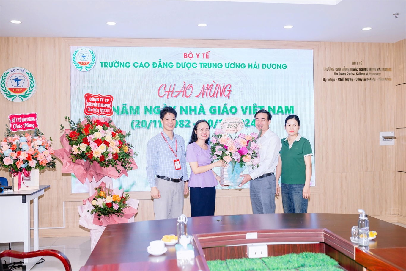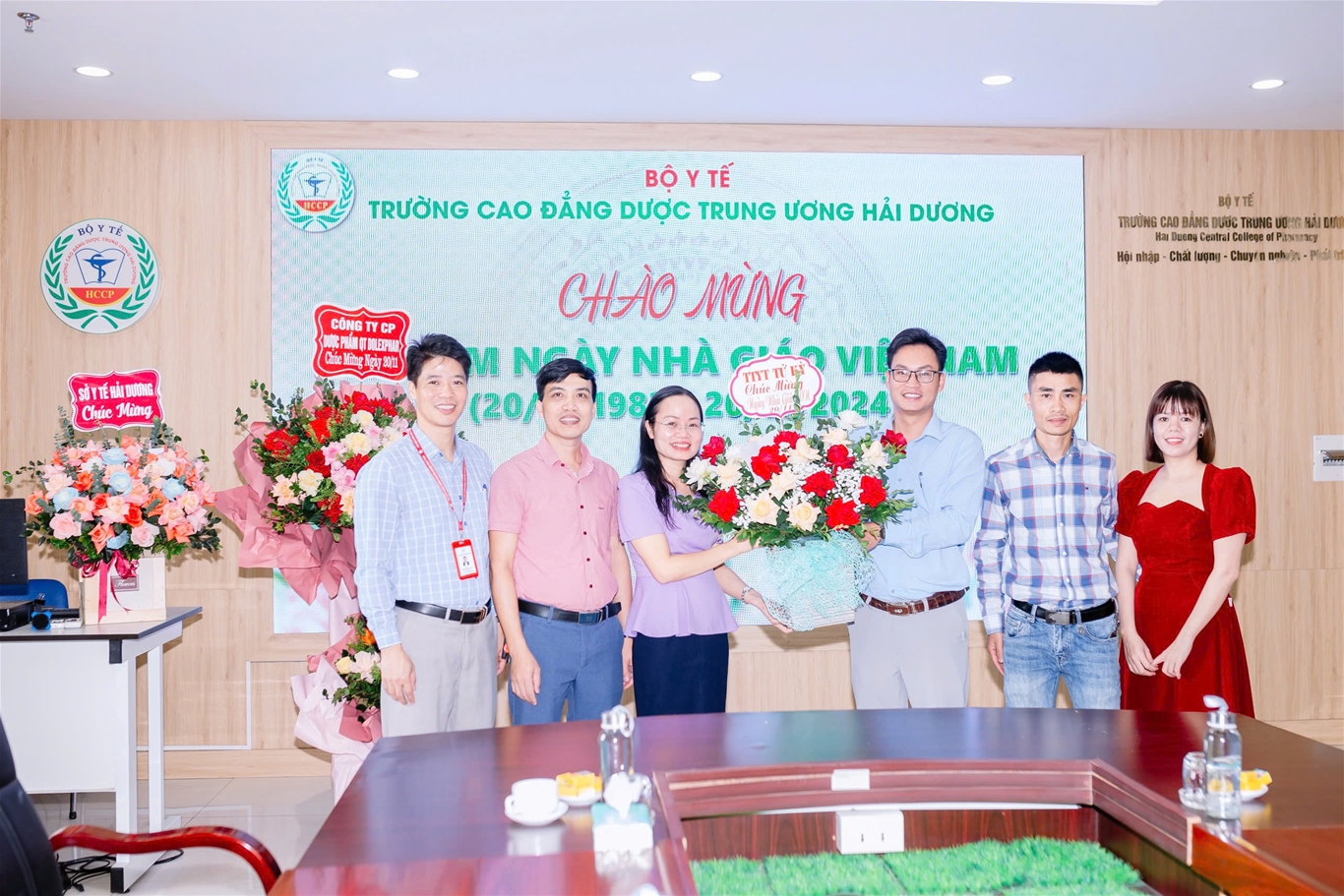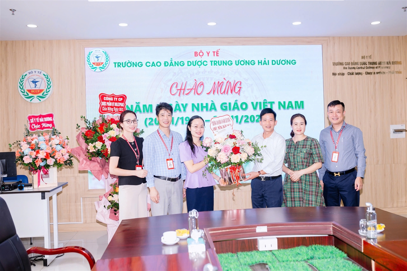 Nhằm tri ân, tôn vinh, chúc mừng những cống hiến của các thày giáo, cô giáo, cán bộ viên chức và người lao động tại trường Cao đẳng Dược Trung ương Hải Dương, đã có nhiều hoạt động sôi nổi được tổ chức trong tháng 11: Giải chạy “HCCP Run 2024” do Đoàn thanh niên - Hội Sinh viên trường tổ chức thu hút sự hưởng ứng tham gia của đông đảo cán bộ, giảng viên và sinh viên trường; Thi văn nghệ giữa các chi đoàn sinh viên; Nhà trường đón nhận tình cảm, sự tri ân của các tổ chức, đơn vị, tập thể sinh viên các khóa lớp trong các ngày từ 15 đến 20.11.2024 với những lẵng hoa tươi thắm tới chung vui, chúc mừng ngày Nhà giáo Việt Nam.