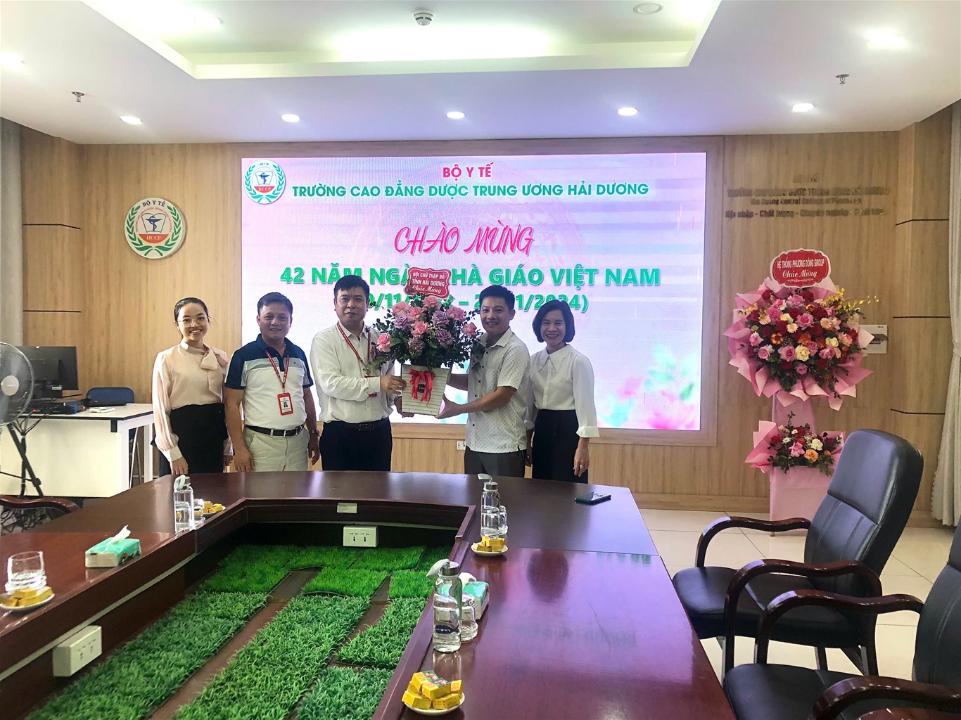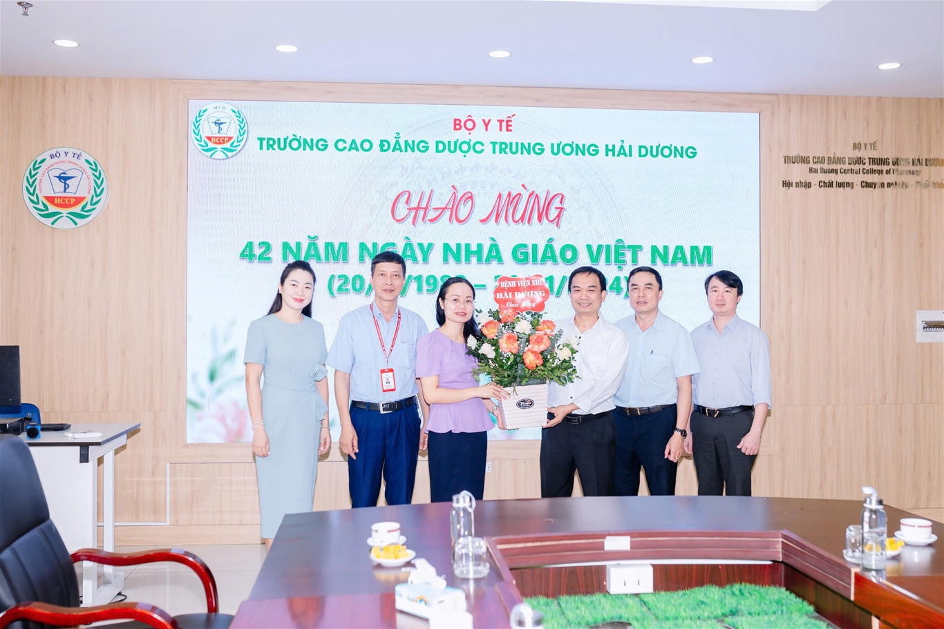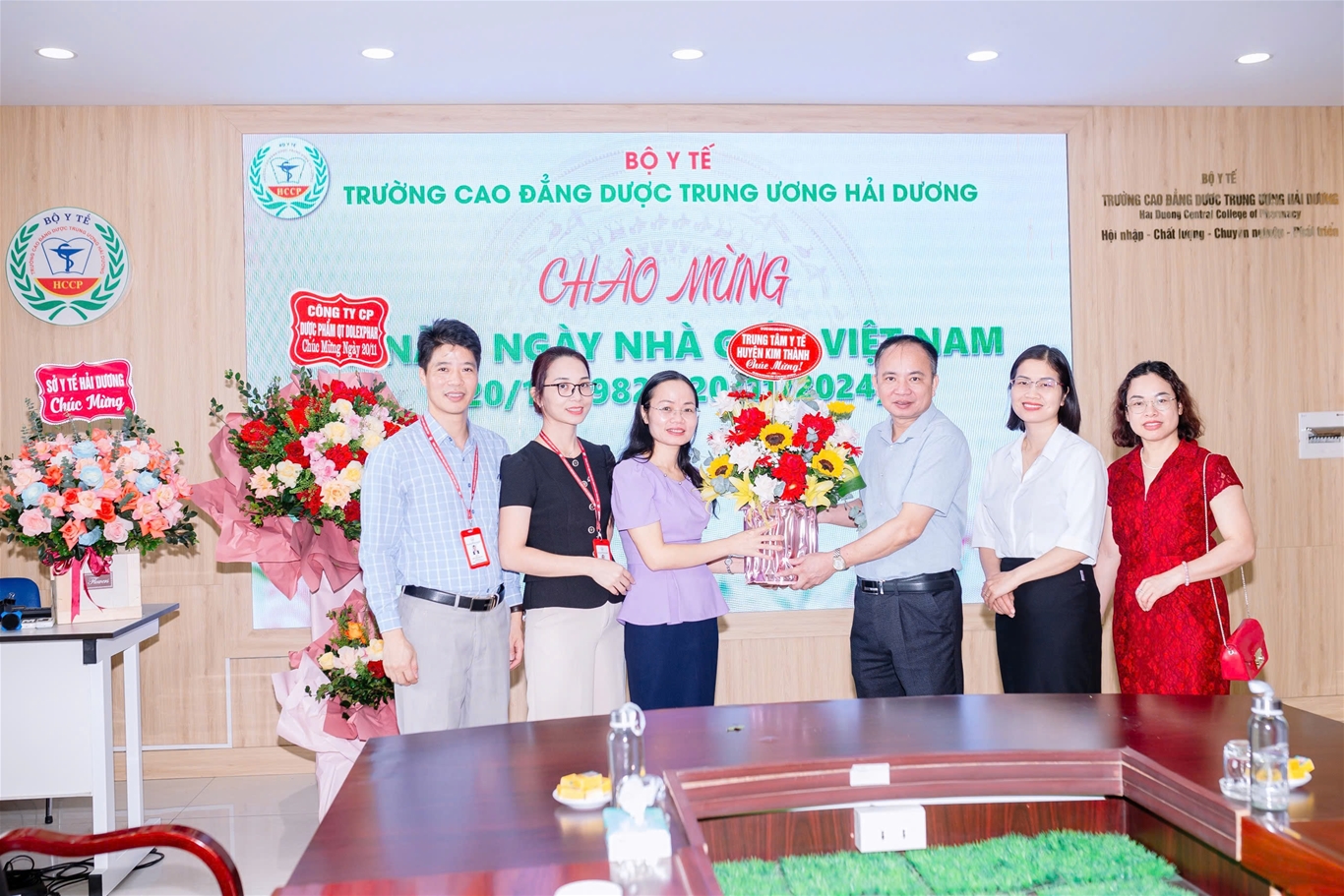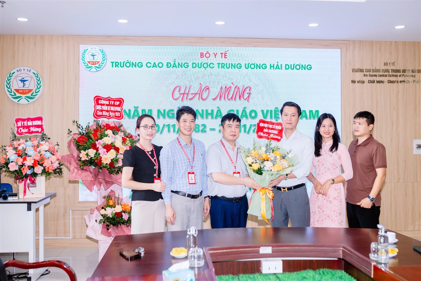 Nhằm tri ân, tôn vinh, chúc mừng những cống hiến của các thày giáo, cô giáo, cán bộ viên chức và người lao động tại trường Cao đẳng Dược Trung ương Hải Dương, đã có nhiều hoạt động sôi nổi được tổ chức trong tháng 11: Giải chạy “HCCP Run 2024” do Đoàn thanh niên - Hội Sinh viên trường tổ chức thu hút sự hưởng ứng tham gia của đông đảo cán bộ, giảng viên và sinh viên trường; Thi văn nghệ giữa các chi đoàn sinh viên; Nhà trường đón nhận tình cảm, sự tri ân của các tổ chức, đơn vị, tập thể sinh viên các khóa lớp trong các ngày từ 15 đến 20.11.2024 với những lẵng hoa tươi thắm tới chung vui, chúc mừng ngày Nhà giáo Việt Nam.