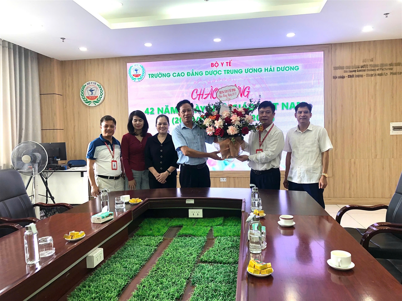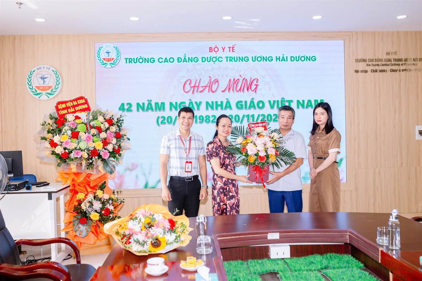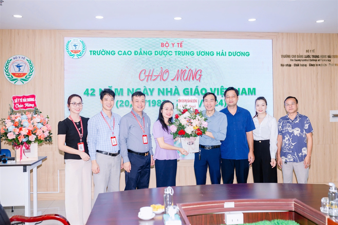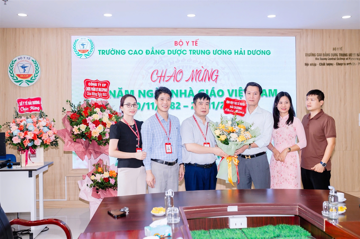Đến tặng hoa chúc mừng nhà trường có đại diện lãnh đạo Sở Y tế; Các đơn vị liên kết đào tạo; Các công ty Dược, Các bệnh viện, Trung tâm kiểm nghiệm, Kiểm soát bệnh tật… Các tổ chức cơ sở phối hợp hoạt động (Công an Tỉnh, Bộ chỉ huy quân sự tỉnh, Liên đoàn lao động Tỉnh, Tỉnh Đoàn – Hội Sinh viên Tỉnh…); Các trường bạn trên địa bàn tỉnh Hải Dương…