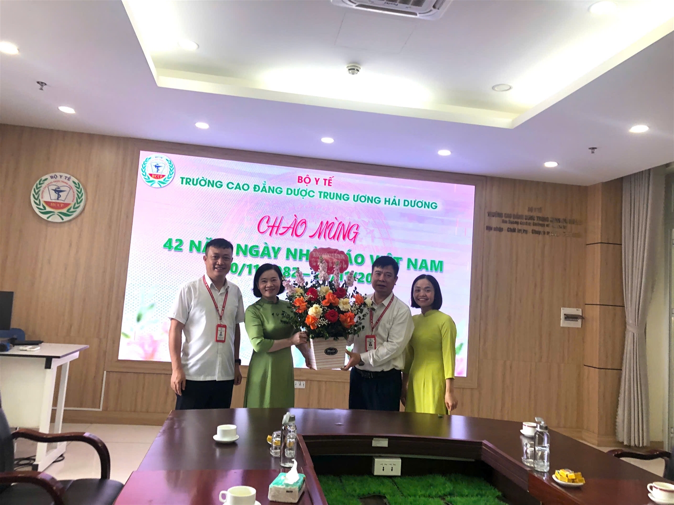 Đặc biệt trong tối 19/11/2024, tại Hội trường lớn trường Cao đẳng Dược Trung ương Hải Dương đã long trọng diễn ra chương trình mít tinh kỷ niệm 42 năm Ngày Nhà giáo Việt Nam (20/11/1982 – 20/11/2024) với sự tham gia của đông đủ thày và trò nhà trường.