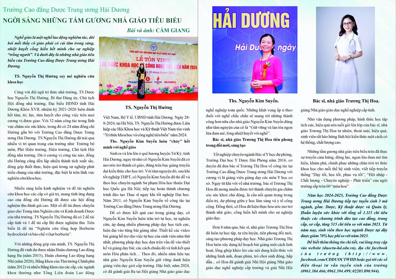 Chúc mừng các nhà giáo tiêu biểu của trường đã đạt được nhiều thành tích xuất sắc, chúc mừng Trường Cao đẳng Dược Trung ương Hải Dương.