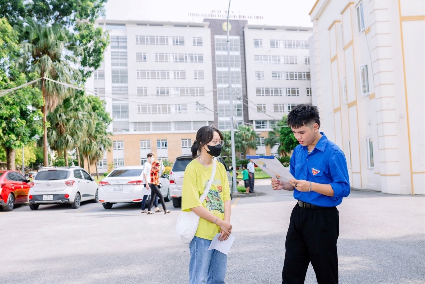 Sinh viên tình nguyện hướng dẫn, phân luồng thí sinh nhập học ngay từ cổng trường