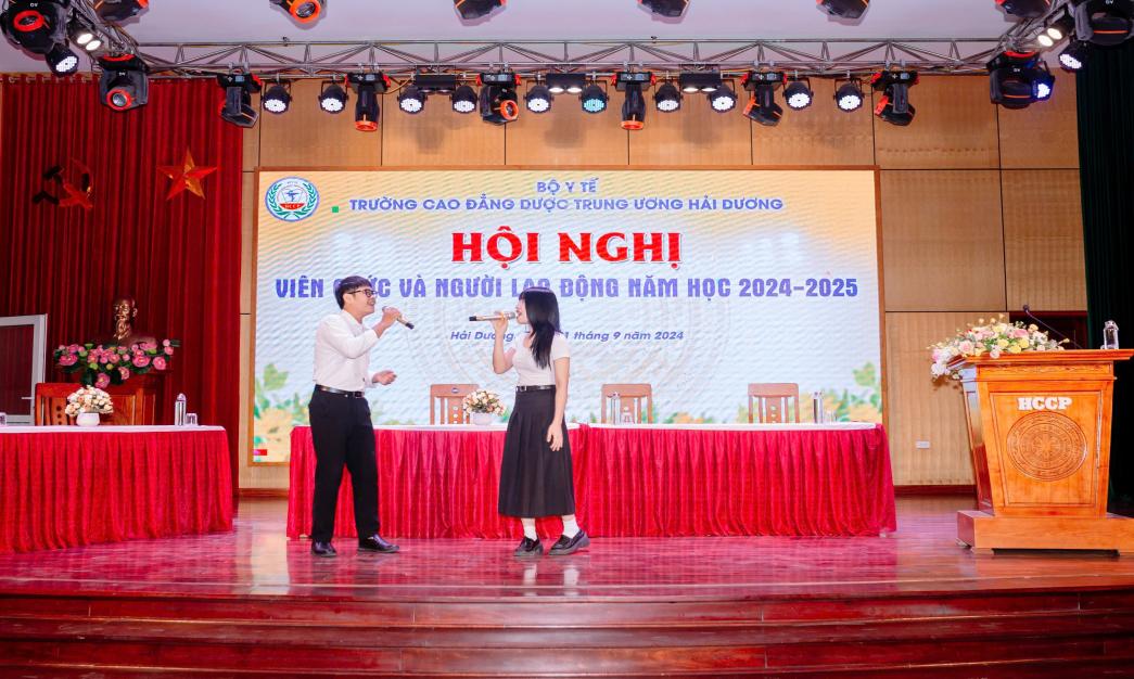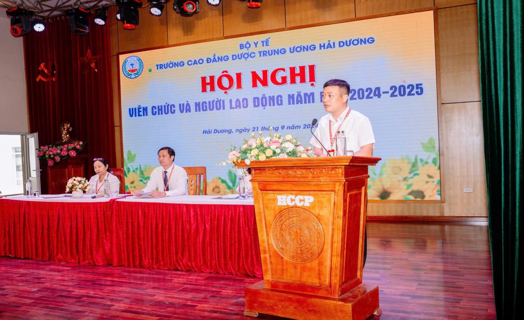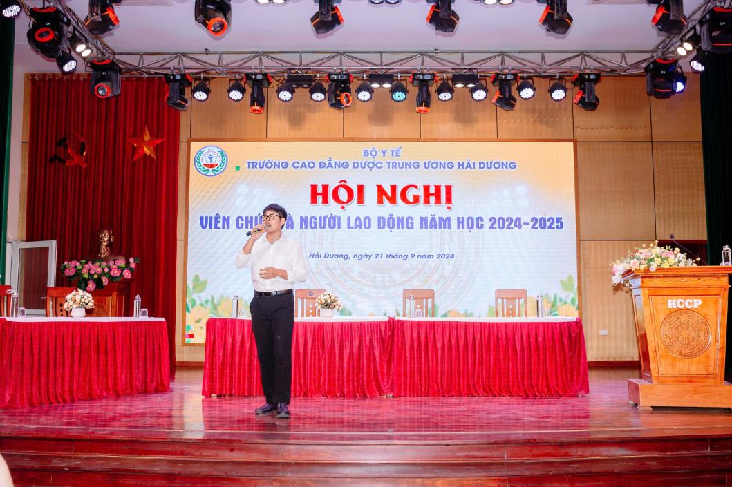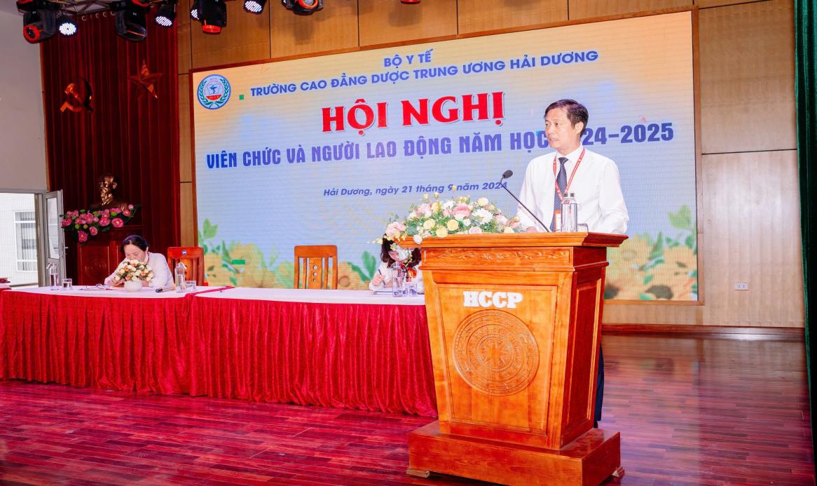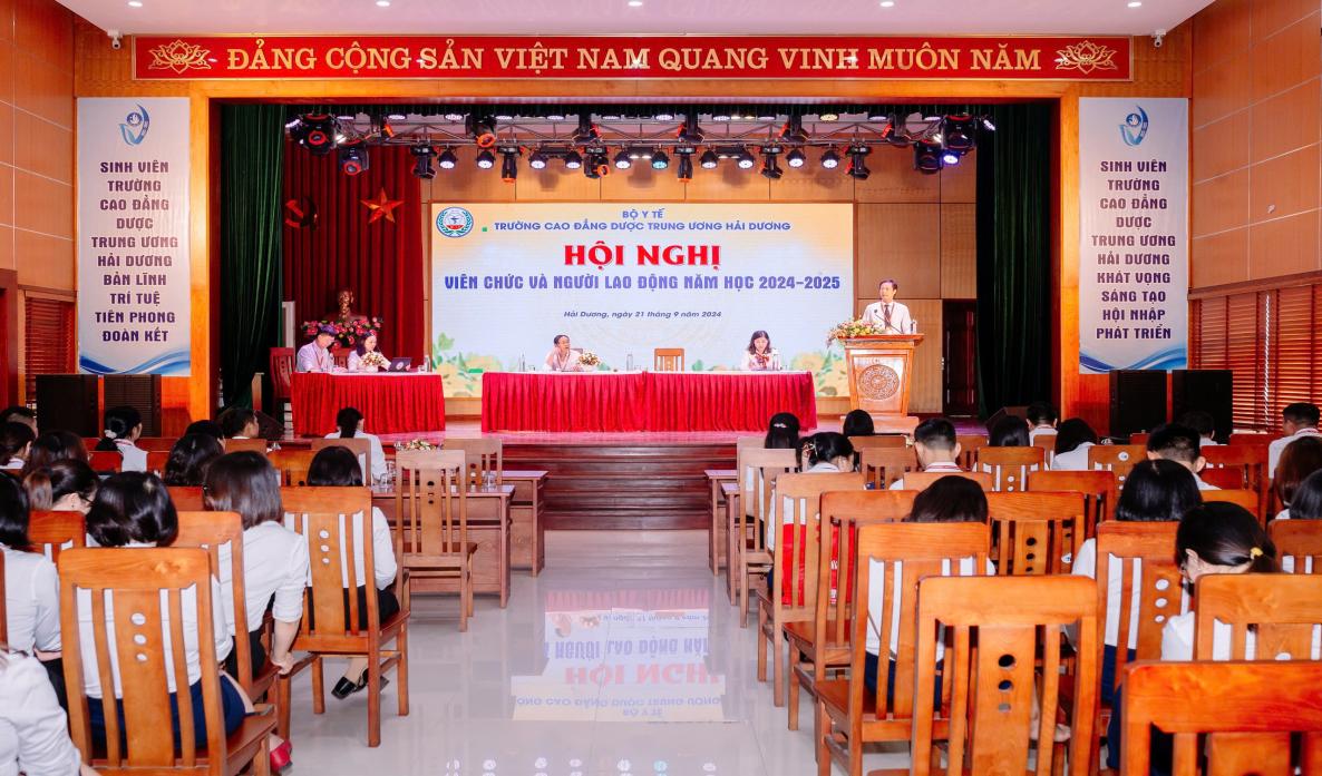 Sáng ngày 21/09/2024, Trường Cao đẳng Dược Trung ương Hải Dương đã long trọng tổ chức Hội nghị viên chức và người lao động năm học 2024-2025 nhằm tổng kết, đánh giá kết quả thực hiện Nghị quyết Hội nghị viên chức và người lao động năm học 2023-2024 và xác định phương hướng, nhiệm vụ trọng tâm năm học 2024-2025.