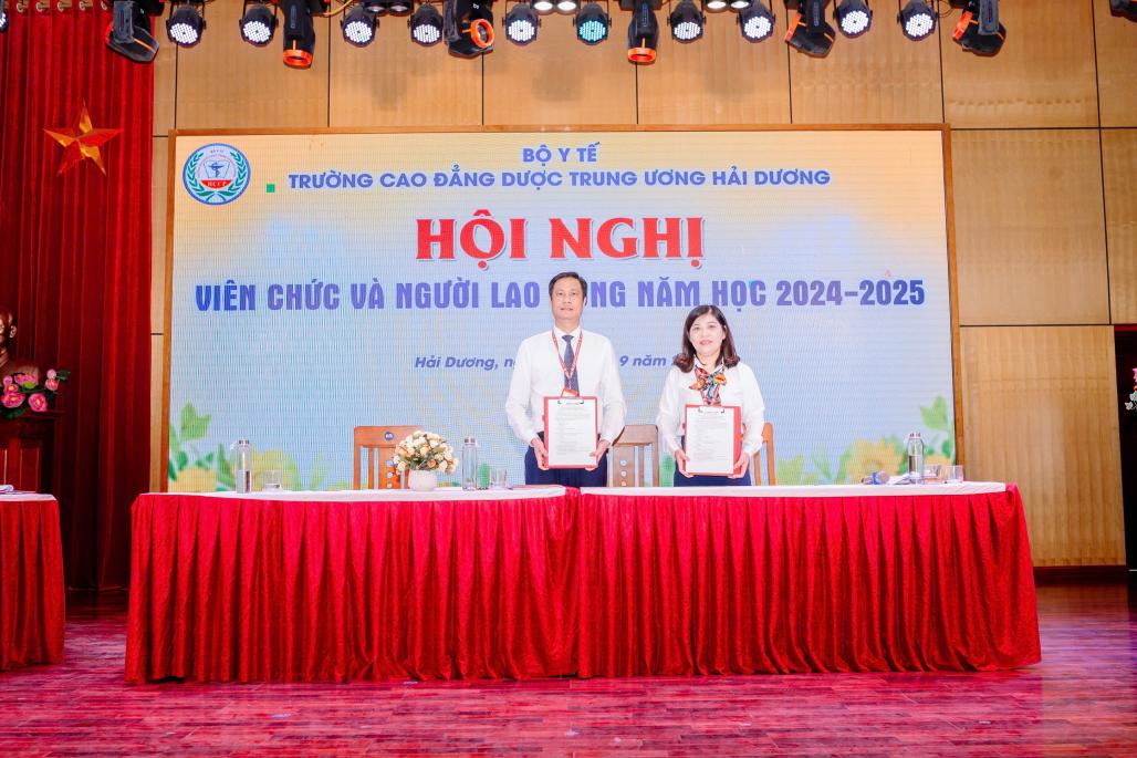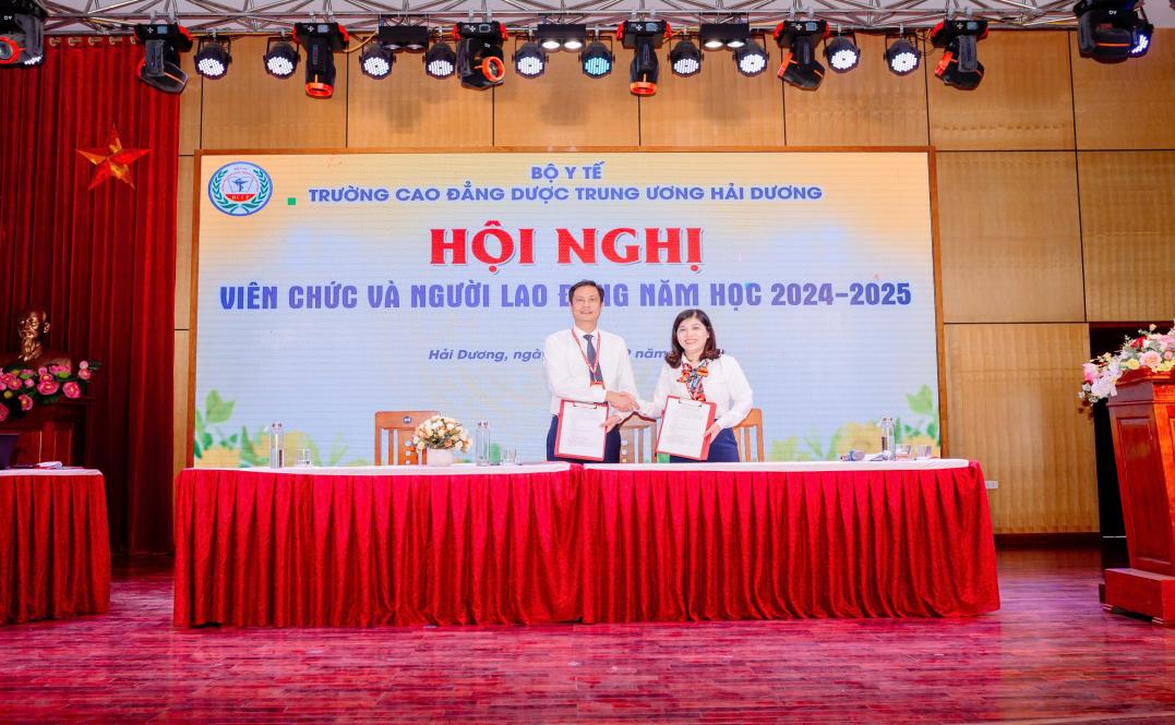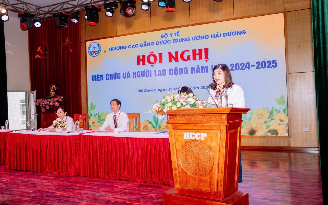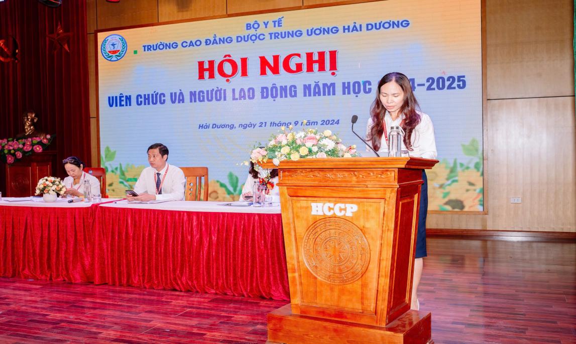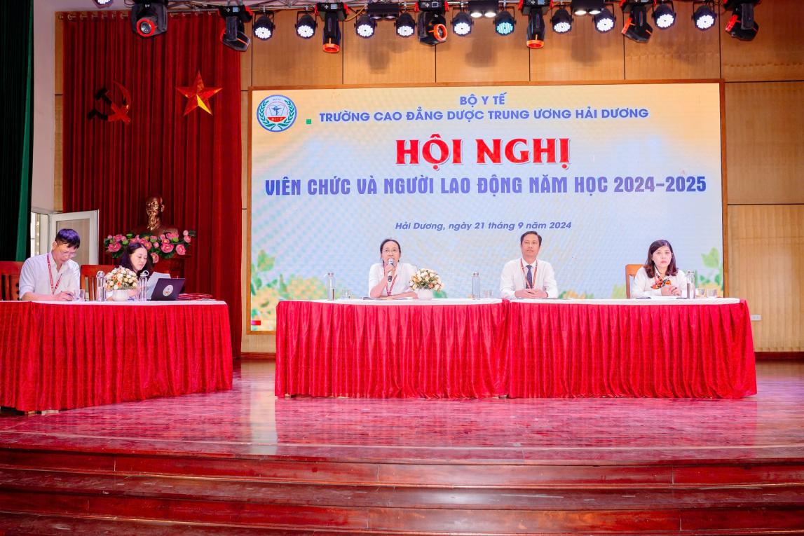 Sau thời gian làm việc tích cực, khẩn trương, Hội nghị đã đi đến biểu quyết thông qua các chỉ tiêu cơ bản của nhiệm vụ năm 2024-2025 và thống nhất các kế hoạch, chỉ tiêu đề ra. Hội nghị viên chức và người lao động Trường cao đẳng Dược trung ương Hải Dương năm học 2024-2025 đã thành công tốt đẹp trong không khí đoàn kết, thống nhất của tập thể viên chức và người lao động, quyết tâm thực hiện thành công Nghị quyết Hội nghị Viên chức và người lao động năm học mới.