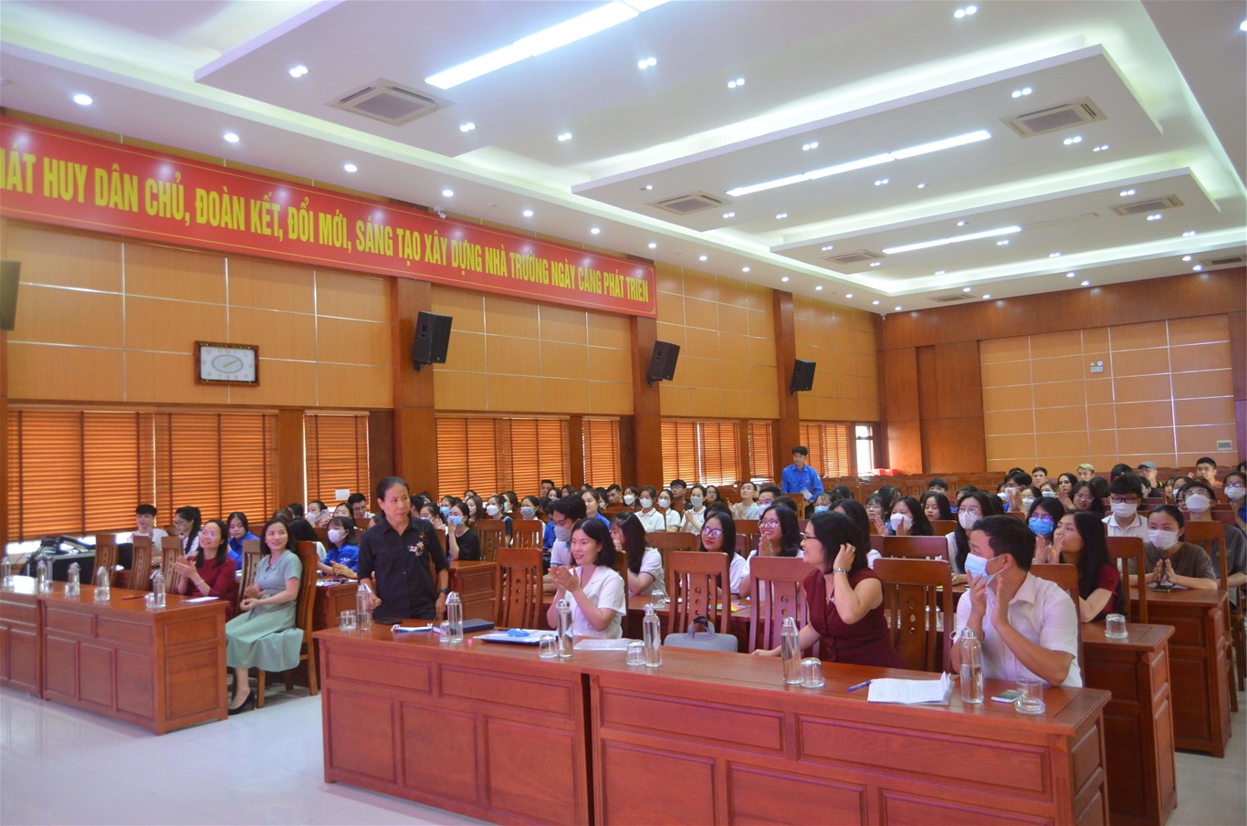 Tại buổi truyền thông, Bà Đặng Thị Thúy Hường - Đại diện Viện phát triển Xã hội Việt Nam - Dự án ISDS đã phát biểu khai mạc buổi truyền thông. Bà Nguyễn Thị Thanh Nhài - Phó Hiệu trưởng Trường Cao đẳng Dược đã phát biểu cảm ơn và mong rằng với những chia sẻ về kiến thức chuyên môn nghiệp vụ từ các bác sỹ chuyên khoa cung cấp sẽ giúp cho các em sinh viên nhà trường nâng cao nhận thức kiến thức cơ bản về phòng, chống HIV/AIDS trong sinh viên, từ đó tuyên truyền, chủ động phòng, chống cho mình cũng như người thân.