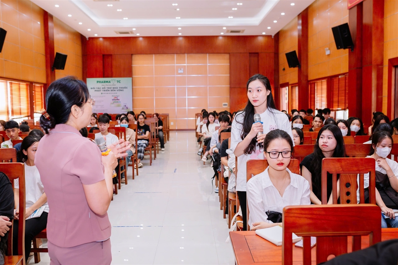 Dược sĩ chuyên khoa II Nguyễn Thị Thanh Nhài - Phó Hiệu trưởng Nhà trường chia sẻ với sinh viên về Phương pháp học tập