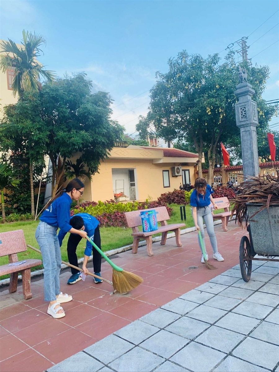 Các đoàn viên dọn dẹp, tổng vệ sinh khuôn viên nghĩa trang