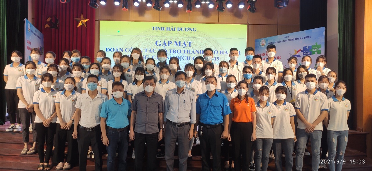 Chiều nay, 09/09/2021, tại Hội trường Trường Cao đẳng Dược Trung ương Hải Dương, Sở Y tế Hải Dương đã long trọng tổ chức buổi gặp mặt đoàn cán bộ, giảng viên và sinh viên tình nguyện của tỉnh Hải Dương tham gia hỗ trợ công tác phòng chống dịch Covid-19 tại TP. Hà Nội.